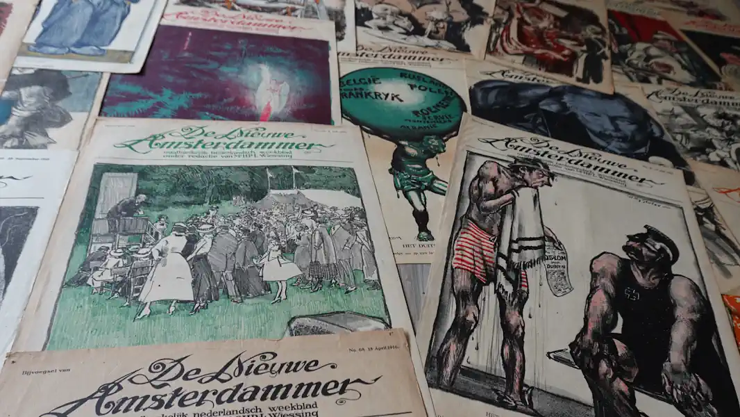 Welkom bij onze webshop, waar geschiedenis tot leven komt in spotprenten! Onze collectie neemt je mee op een reis door de tijd: van het opkomende antisemitisme rond 1900 en de Eerste Wereldoorlog, door het interbellum en de Tweede Wereldoorlog, tot de activistische jaren 70 en 80 in Nederland, de propaganda van Noord-Korea, en de nasleep van 9/11 in Amerika.