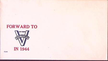 Van 1939 t/m 1945 vond de Tweede Wereldoorlog plaats op meerdere continenten tegelijk. Twee groepen landen streden tegen elkaar. Duitsland, Italië en Japan vormden samen de As-mogendheden. Aan de andere kant streden de geallieerden, waaronder China, Rusland, Frankrijk, het Verenigd Koninkrijk, Canada en de Verenigde Staten. In Amerika werden tijdens de Tweede Wereldoorlog postkaarten gedrukt, vaak voor propaganda. Op deze kaart is te lezen: FORWARD TO V VICTORY IN 1944.