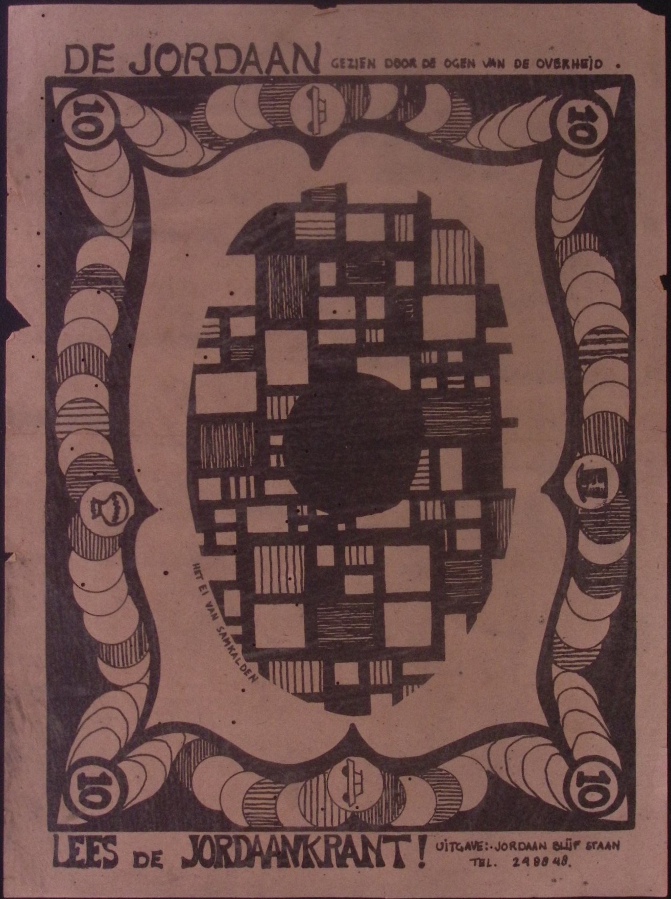 Poster van de Jordaankrant. Unieke vintage poster die in de jaren 70/80 is uitgebracht als onderdeel van de 'Counter Culture'. Hierin worden de Provo beweging, de Anarchisten, Communisten en vele andere toe gerekend.