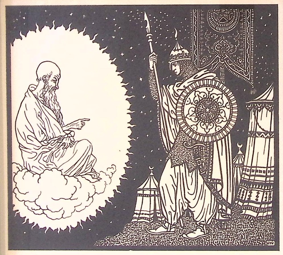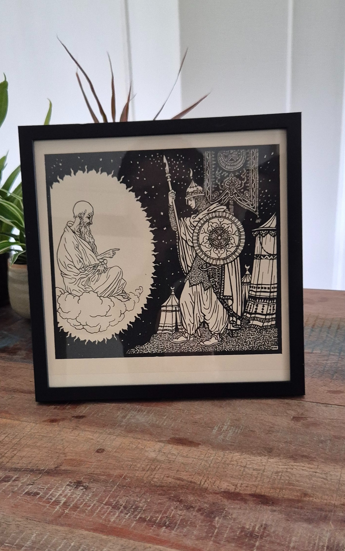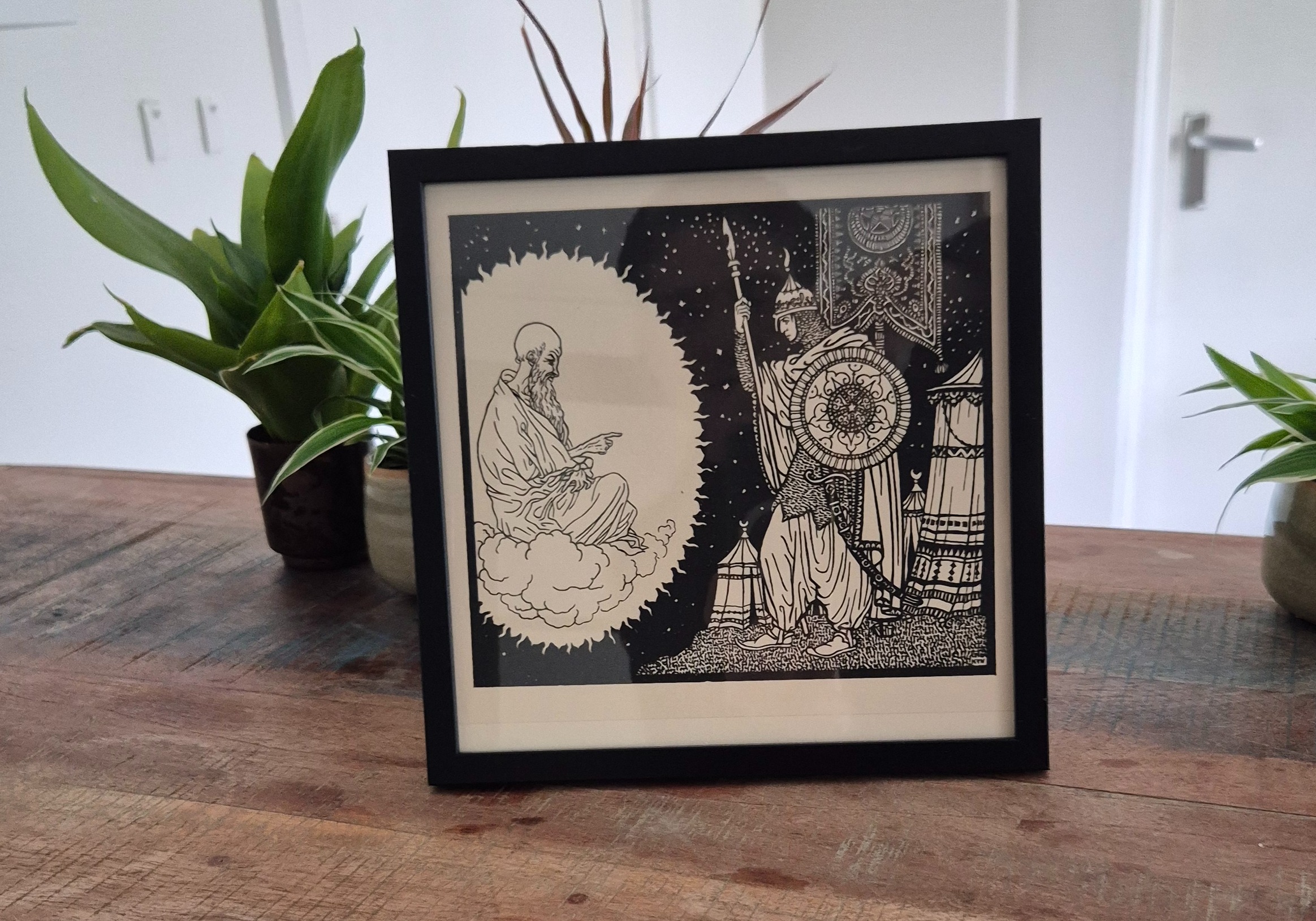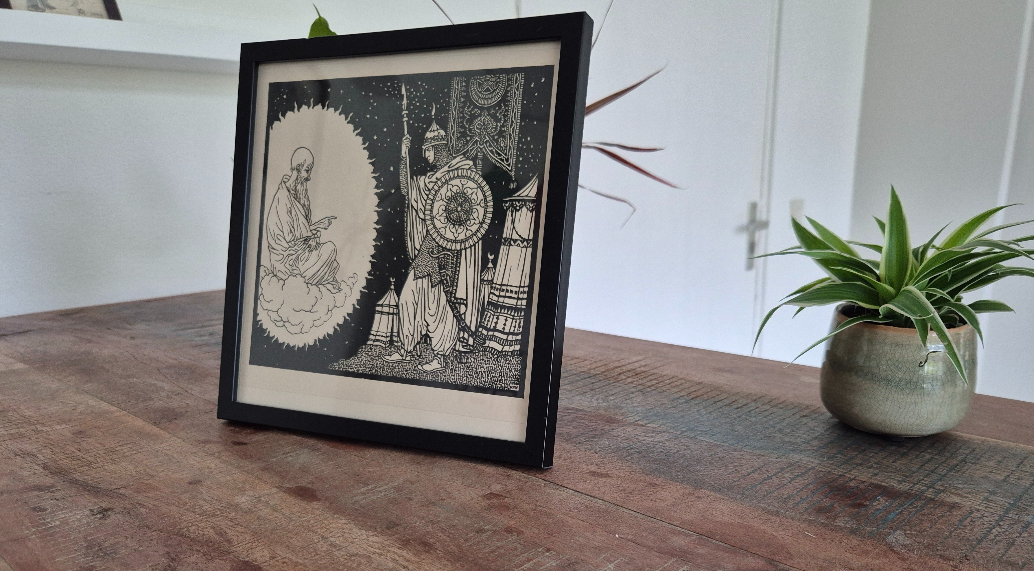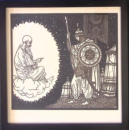 Bijzondere authentieke prent, geen herdruk! De Duitse kunstenaar Karl Thylmann vervaardigde rond 1912 de serie Gulistan: een reeks expressieve houtsneden geïnspireerd door Perzische poëzie. Wordt geleverd in vierkant lijstje.