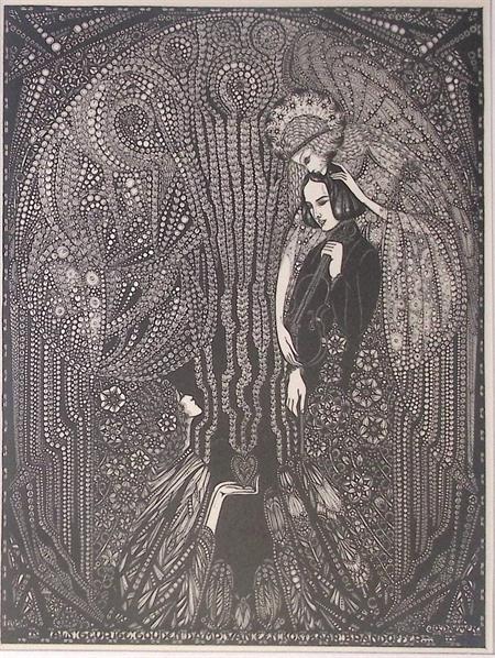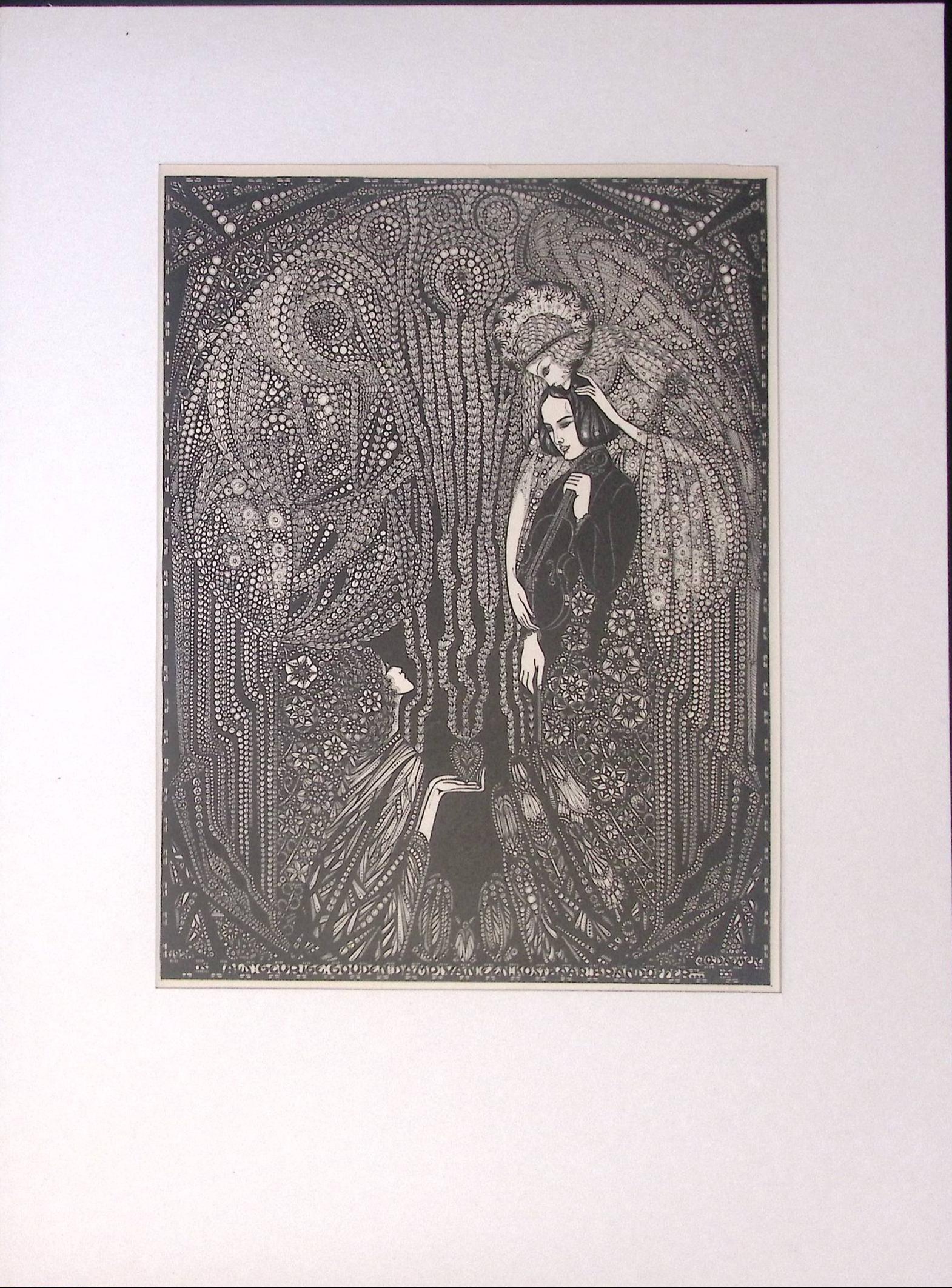 Bijzondere authentieke prent (houtsnede), geen herdruk! Komt uit het boek De heilige vlam, waar prachtige prenten in een verhaal verwerkt zijn Gemaakt door de bekende Nederlandse kunstenares Jo Daemen. Wordt geleverd in passe partout in formaat 30x40.