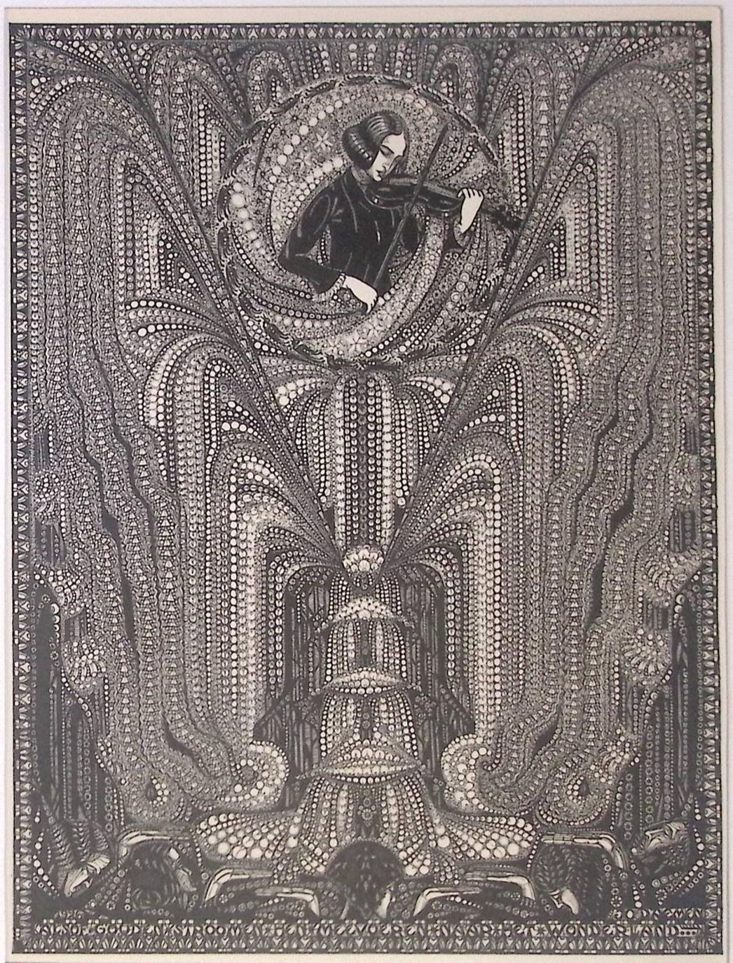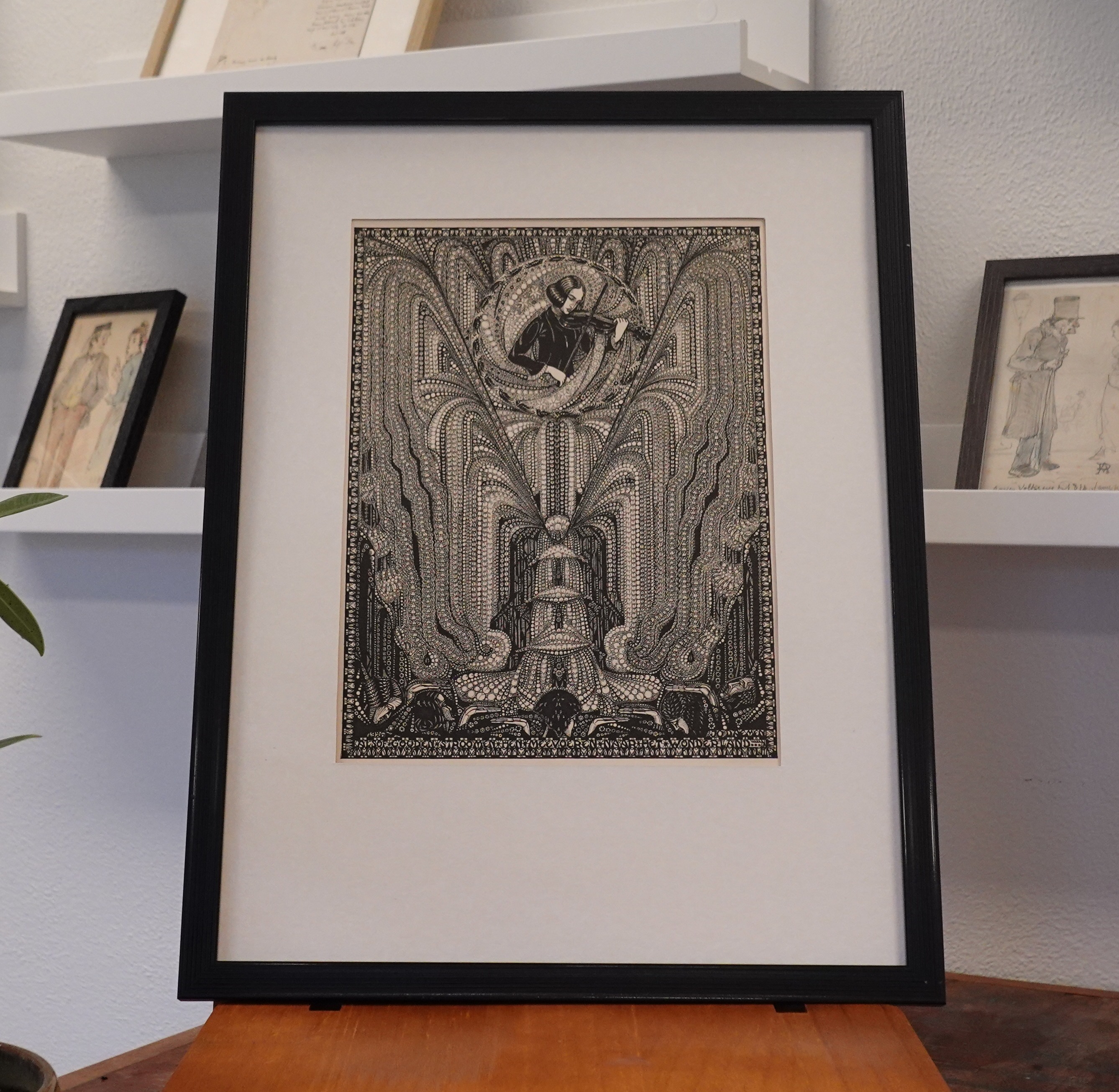 Bijzondere authentieke prent (houtsnede), geen herdruk! Komt uit het boek De heilige vlam, waar prachtige prenten in een verhaal verwerkt zijn Gemaakt door de bekende Nederlandse kunstenares Jo Daemen. Wordt geleverd in passe partout in formaat 30x40.