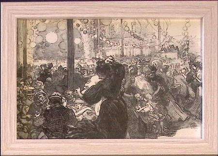 Bijzondere authentieke mini prent (houtsnede), zit in zwarte lijst, geen herdruk! Komt uit begin jaren 1900, midden in de Belle Epoque periode in Frankrijk. Mooie inkijk in de mode en lifestyle uit die tijd. Komt uit Franse weekblad L'Image, waar elke week een mode, lifestyle en sierlijke prenten werden afgedrukt.