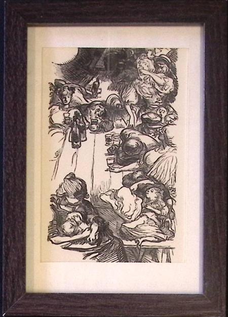 Bijzondere authentieke mini prent (houtsnede), zit in zwarte lijst, geen herdruk! Komt uit begin jaren 1900, midden in de Belle Epoque periode in Frankrijk. Mooie inkijk in de mode en lifestyle uit die tijd. Komt uit Franse weekblad L'Image, waar elke week een mode, lifestyle en sierlijke prenten werden afgedrukt.