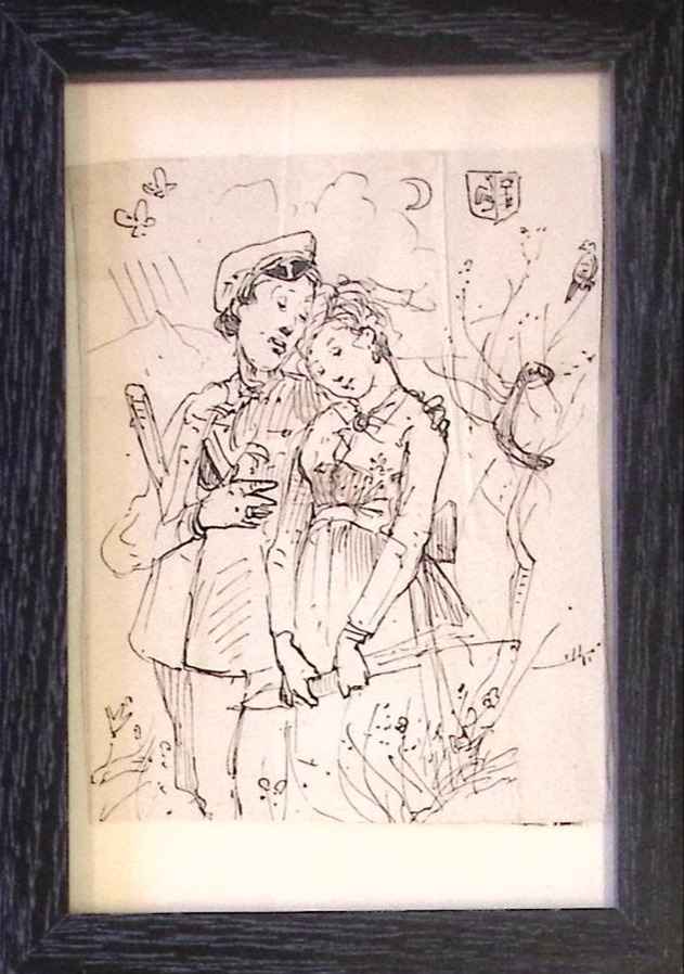 Bijzondere authentieke pentekening, geen herdruk! Originele tekeningen in pen en aquarel, kleurrijk en gedetailleerd. Geschikt voor liefhebbers van handgemaakte, unieke kunstwerken die zowel intiem als decoratief zijn. Wordt geleverd in klein lijstje.