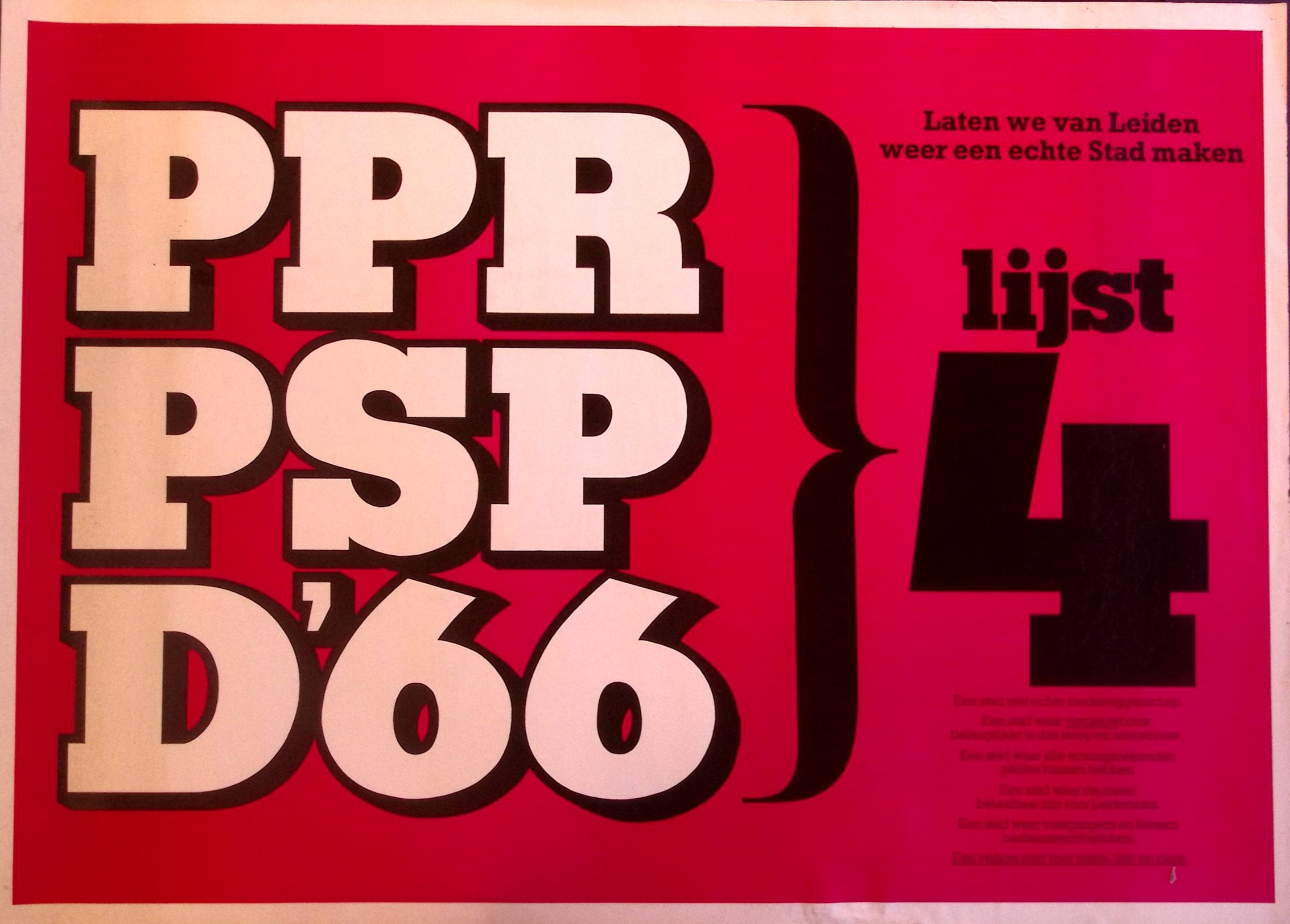 Poster_ppr_psp_d66. Vintage poster die inspeelt op de actualiteiten in Nederland. Geeft een mooi tijdsbeeld van de activisten in Nederland uit de jaren 70/80.