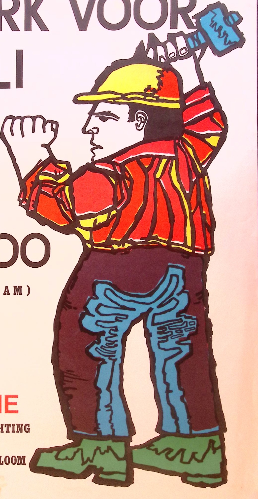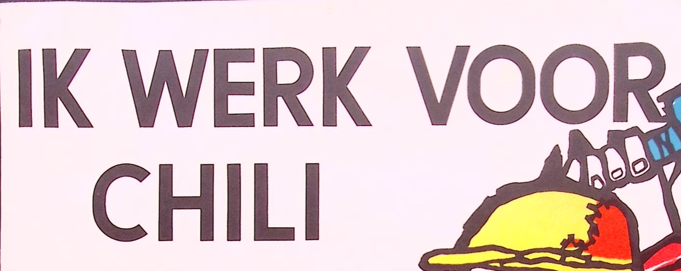 Werk voor Chili. Unieke vintage poster die in de jaren 70/80 is uitgebracht als onderdeel van de 'Counter Culture'. Hierin worden de Provo beweging, de Anarchisten, Communisten en vele andere toe gerekend.