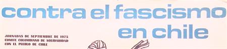 contra el fascismo en chile JORNADAS DE SEPTIEMBRE DE 1975 COMITE COLOMBIANO DE SOLIDARIDAD CON EL PLEBLO DE CHILE por libertad de los resos políticos. De afmeting van deze prent is ca. 47 bij 66 centimeter.