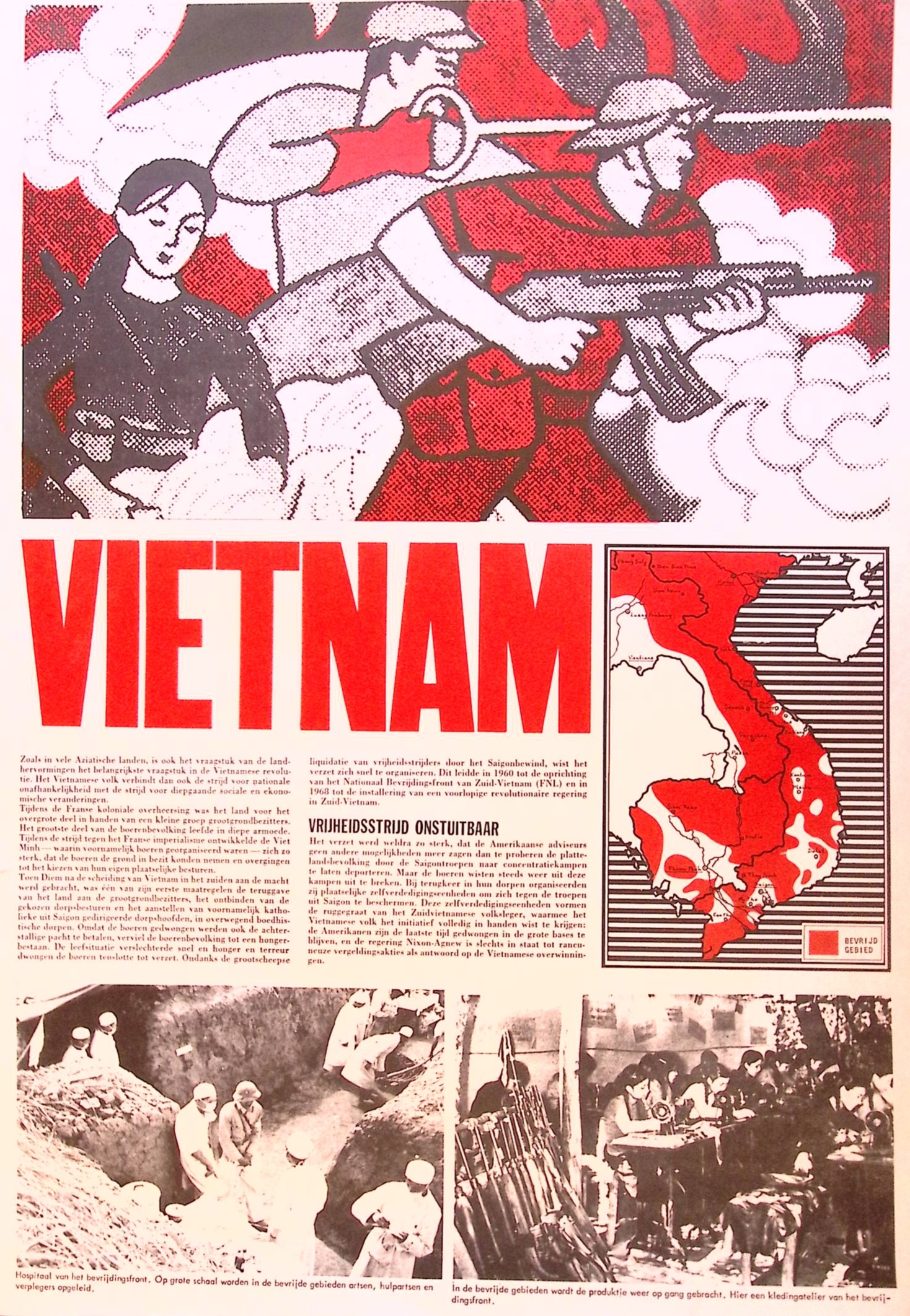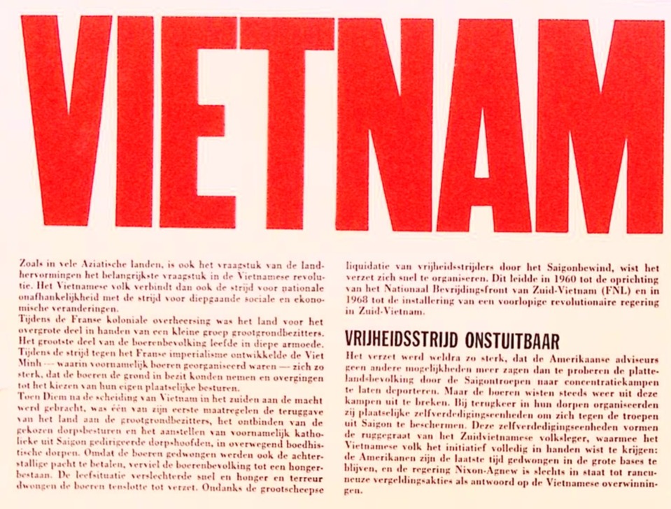 Vietnam vrijheidsstrijd onstuitbaar. Unieke vintage poster die in de jaren 70/80 is uitgebracht als onderdeel van de 'Counter Culture'. Hierin worden de Provo beweging, de Anarchisten, Communisten en vele andere toe gerekend.