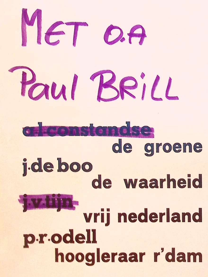 Asva forum midden met o.A oosten paul brill ende alconstandse de groene j.De boo jaztijn- prodell de waarheid vrij nederland hoogleraar r'dam olie vrijdag 14 dec 8uur aula.