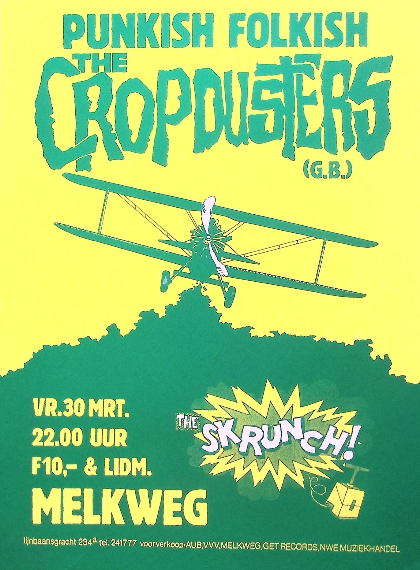 #spotprent #propaganda #kunst #70s #80s #vintage #poster #Melkweg #Punkish Folkish #The Cropdusters #The Skrunch!
