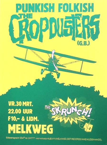 PUNKISH FOLKISH THE CROPDUSERS (G.B.) VR.30 MRT. 22.00 UUR F10,- & LIDM. THE SKRUNCH! MELKWEG. De afmeting van deze prent is ca. 38 bij 51 centimeter.