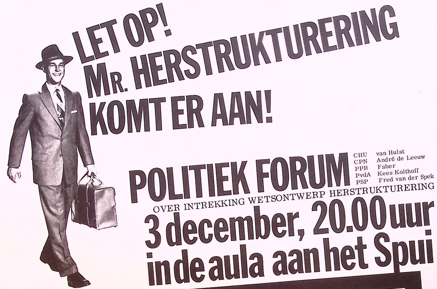 poster "Politiek Forum: Mr. Herstrukturering Komt Er Aan".