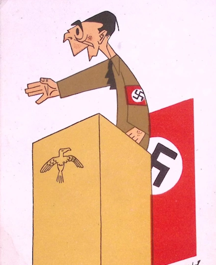 Op onze website vind je spotprenten uit de tweede wereldoorlog waarin figuren als Joseph Goebbels vaak werden afgebeeld. Deze prenten waren een krachtig wapen tegen de nazi-propaganda en dienden als middel om spot te drijven met de machtige propagandaminister. Onze selectie toont hoe kunst destijds werd ingezet om dictatoren te ridiculiseren en politieke statements te maken.