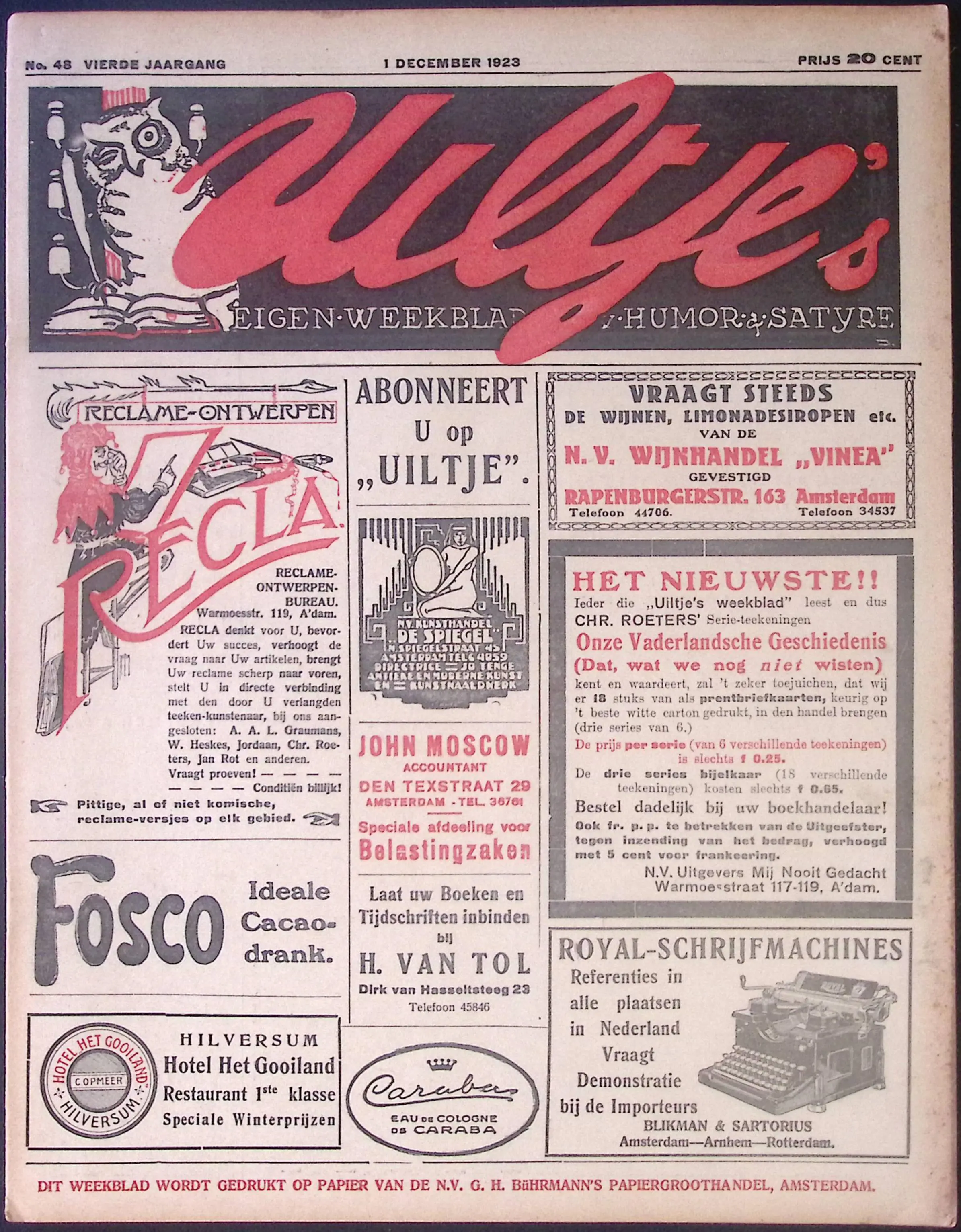 Uiltje combineerde satire en humor om maatschappelijke en politieke thema's op een luchtige manier te belichten. De wekelijkse spotprenten op de dubbele omslag, waarvan de tweede altijd een illustratie van Jordaan bevatte, waren een belangrijk kenmerk van het blad.