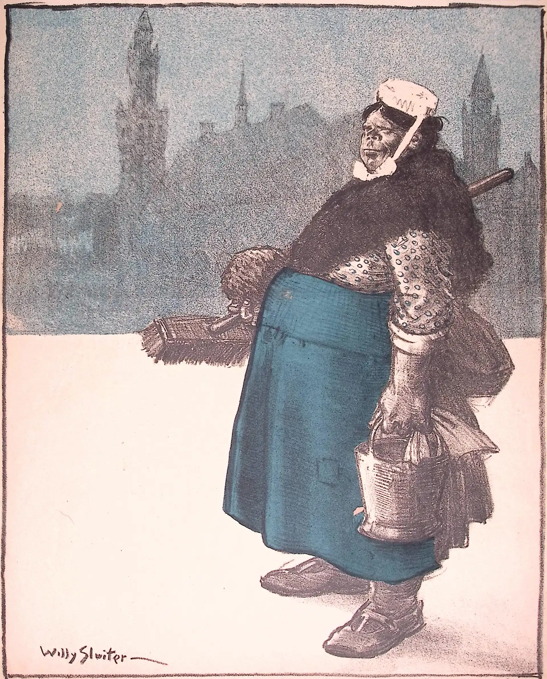Willy Sluiter, geboren op 17 juni 1873 in Den Haag, was een Nederlandse kunstenaar (zie kunstwerken) wiens talent en artistieke visie een blijvende stempel drukten op de Nederlandse kunstwereld. Zijn werk strekte zich uit over verschillende disciplines, waaronder schilderen, tekenen en illustreren. Een belangrijk moment in zijn carrière was zijn betrokkenheid bij De Nieuwe Amsterdammer, een invloedrijk Nederlands tijdschrift uit het begin van de 20e eeuw. Als illustrator leverde Sluiter regelmatig bijdragen aan dit tijdschrift, waarbij zijn levendige en kleurrijke afbeeldingen een belangrijke rol speelden in het vormgeven van het visuele landschap van de publicatie. Door zijn werk voor De Nieuwe Amsterdammer verwierf Sluiter nationale bekendheid en droeg hij bij aan de opkomst van de moderne Nederlandse illustratiekunst.